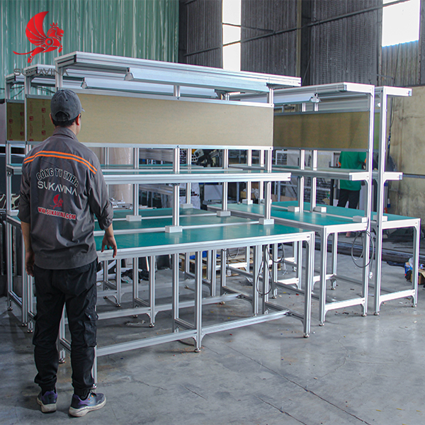 Bàn thao tác khung nhôm định hình là sản phẩm đang được ưa chuộng và sử dụng nhiều trong các nhà máy, xí nghiệp. Bởi lẽ nhôm có tính năng nhẹ, dẻo, chống oxy hóa cao, dễ dàng thao tác, thiết kế và lắp đặt theo kích thước yêu cầu. Với những tính năng và chất lượng vượt trội, bàn thao tác khung nhôm định hình là lựa chọn đúng đắn của các doanh nghiệp hiện nay.