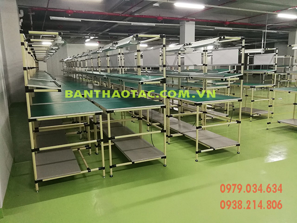 Bàn thao tác lắp ráp với những tính năng linh hoạt, dễ dàng tháo lắp và di chuyển. Bàn thao tác lắp ráp được sử dụng rộng rãi trong nhà máy, xí nghiệp.