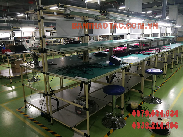 Bàn thao tác lắp ráp với những tính năng linh hoạt, dễ dàng tháo lắp và di chuyển. Bàn thao tác lắp ráp được sử dụng rộng rãi trong nhà máy, xí nghiệp.