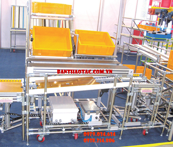 Bàn thao tác lắp ráp với những tính năng linh hoạt, dễ dàng tháo lắp và di chuyển. Bàn thao tác lắp ráp được sử dụng rộng rãi trong nhà máy, xí nghiệp.