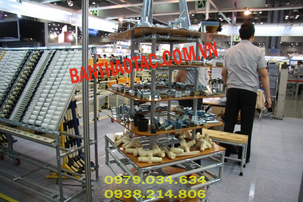 Bàn thao tác lắp ráp với những tính năng linh hoạt, dễ dàng tháo lắp và di chuyển. Bàn thao tác lắp ráp được sử dụng rộng rãi trong nhà máy, xí nghiệp.