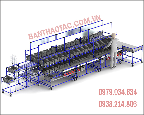 Bàn thao tác lắp ráp với những tính năng linh hoạt, dễ dàng tháo lắp và di chuyển. Bàn thao tác lắp ráp được sử dụng rộng rãi trong nhà máy, xí nghiệp.
