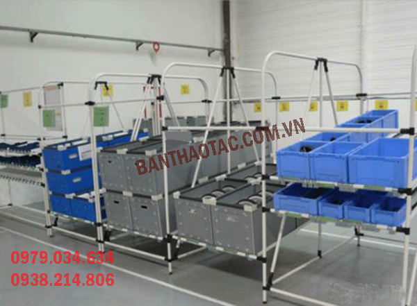 Bàn thao tác lắp ráp với những tính năng linh hoạt, dễ dàng tháo lắp và di chuyển. Bàn thao tác lắp ráp được sử dụng rộng rãi trong nhà máy, xí nghiệp.