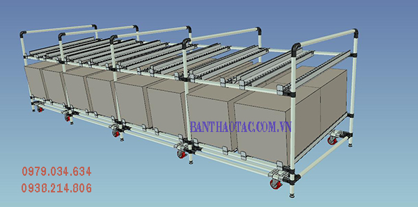 Xe đẩy hàng kết hợp với thanh truyền con lăn