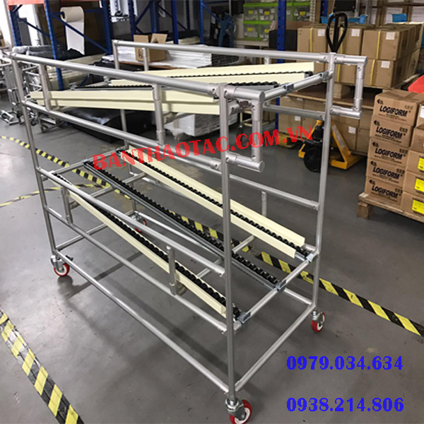 Xe đẩy hàng kết hợp với thanh chuyền con lăn
